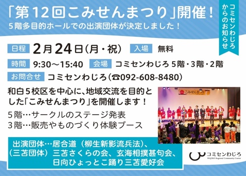 お問合せ:コミセンわじろ(☎092-608-8480)