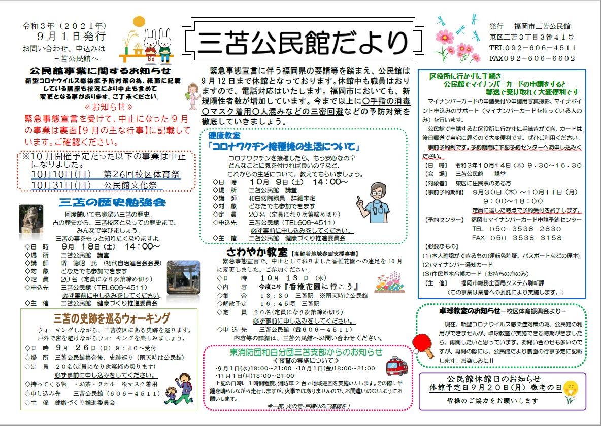 公民館だより・行事予定2021年10月