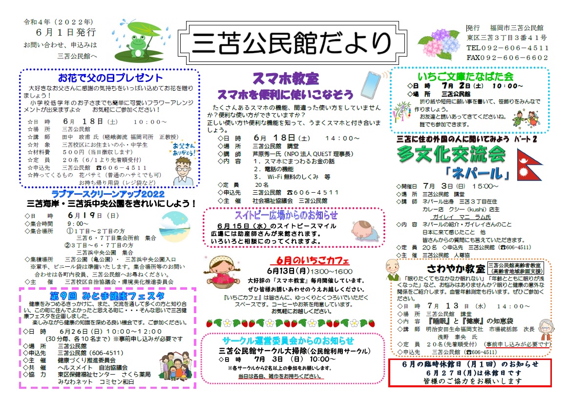 福岡市の最北端、東区三苫の情報をお届けします。 サイトに関するご意見・お問い合わせは三苫校区自治協議会(又は各種団体)までお寄せください。