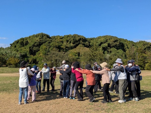 三苫公民館にて血圧測定と健康状態をチェックし昨年も好評だった西内先生によるウォーキング講座の後、三苫浜中央公園まで全員でウォーキングしました。