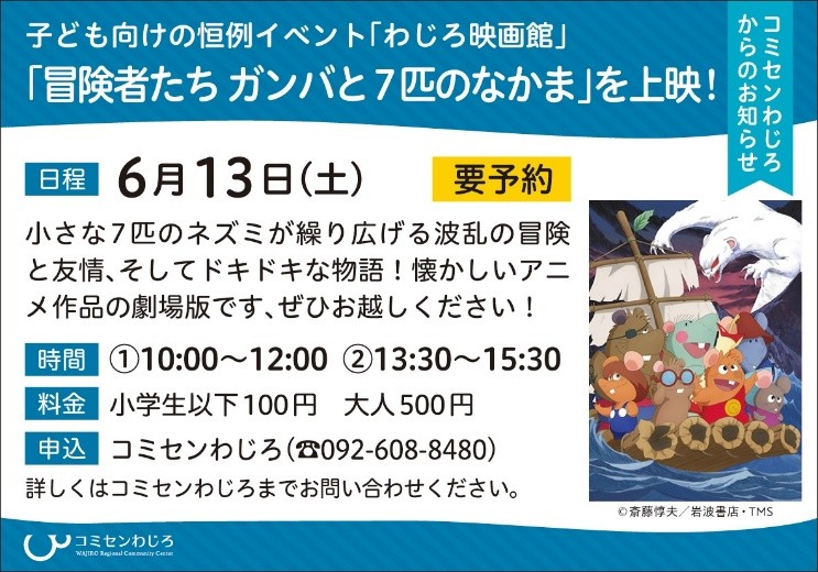 「冒険者たち ガンバと7匹のなかま」を上映!