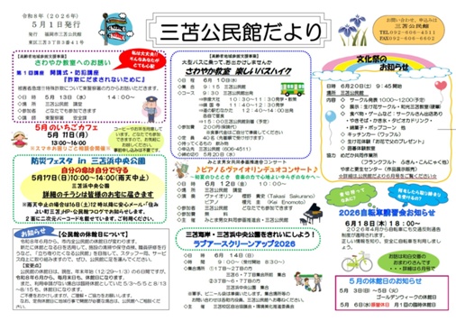 福岡市の最北端、東区三苫の情報をお届けします。 サイトに関するご意見・お問い合わせは三苫校区自治協議会(又は各種団体)までお寄せください。