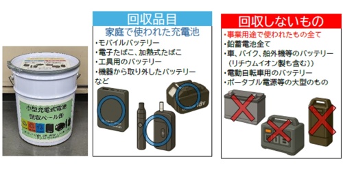小型充電式電池の回収を始めました 【回収品目】 〇 デジタルカメラ等の電子機器から取り外した小型充電式電池(モバイルバッテリー、電子たばこ・加熱式たばこなど) 【回収方法】 〇絶縁のため、端子部分にテープを貼って出して下さい。 〇 液漏れの恐れがある場合は、ビニール袋に入れてください。 〇小型充電式電池の取り...