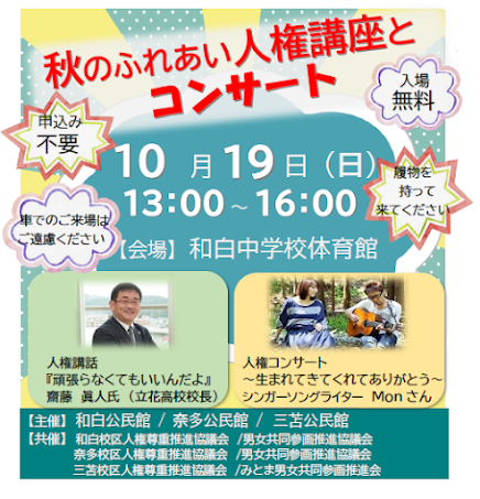 ※このページは、下記URLと重複しています。ご了承ください。 秋のふれあい人権講座とコンサート(https://mitomako.blogspot.com/2025/10/blog-post_4.html)
